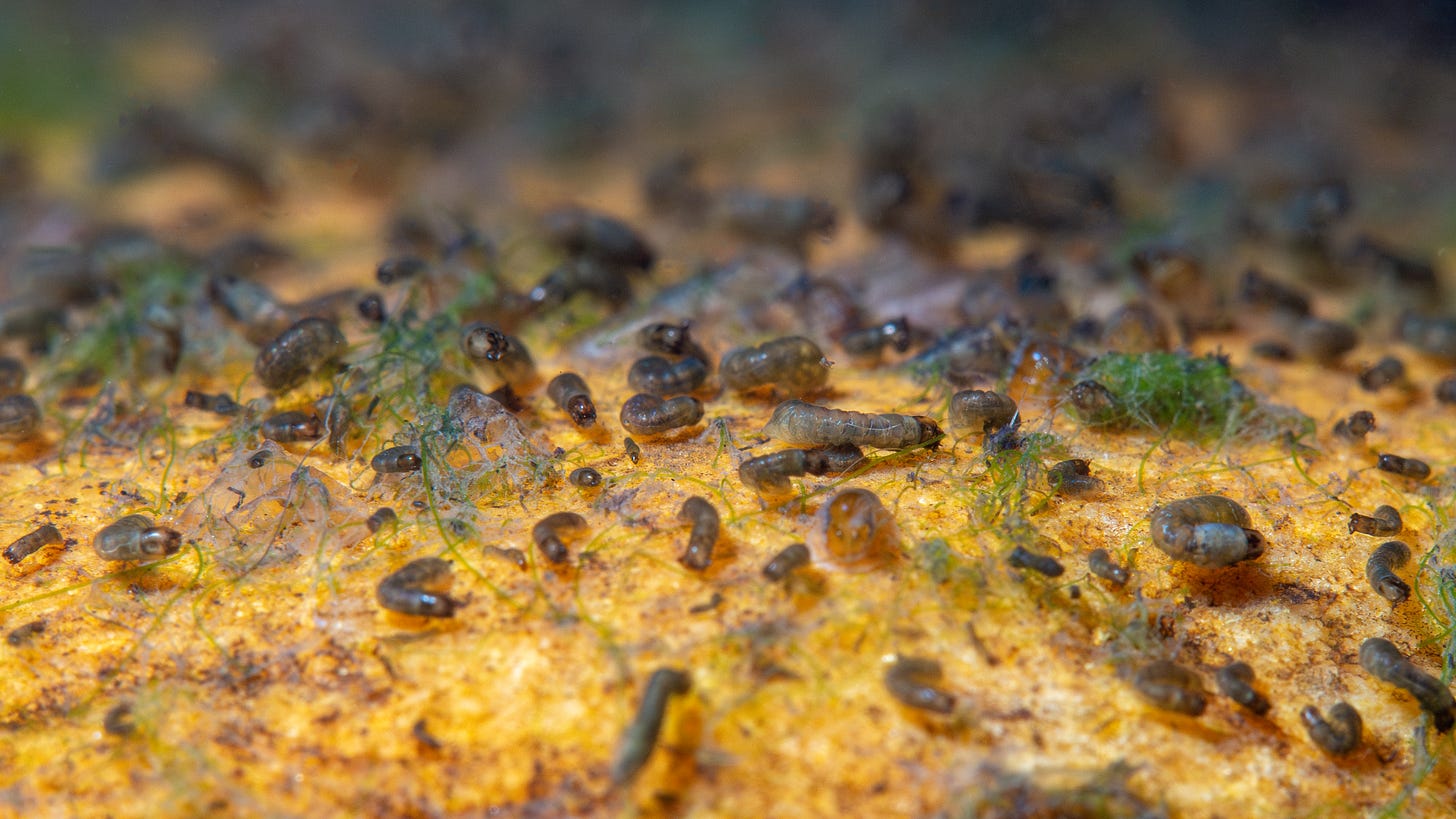 At this point, I had been focusing a lot on calm waters and just climbing over any sections that had a bit of white water. I remembered how, for some species, those turbulent waters are the safest place to be, where the predators won’t go. They can also be quite oxygen-rich with all the aeration. So I find myself some regions of strong flow, and stick my face in (with mask and snorkel) to see what I can find. Most of the time, there was nothing. Eventually, I found life, a bunch of larvae some some sort of insect. How it managed to place its eggs in the water, I have no idea, but the young are there, and they are firmly in place. It was like watching those inflatable tube characters that are dancing. A higher shutter speed was needed for any chance of freezing the action. In hindsight, I should have also done a slow shutter speed image to capture the motion of these larvae.